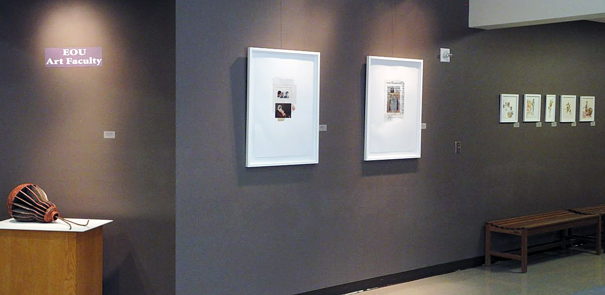 The work ranges from sculpture and collage to oil painting and photography, and demonstrates the EOU Art Department’s mission to “actively contribute to the aesthetic and conceptual dialogue that is visual art.”