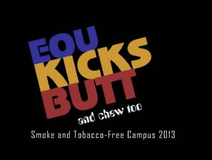 The President’s Office at Eastern Oregon University is pleased to announce that EOU will be in full compliance with Governor Kitzhaber’s mandate for a Tobacco-Free state property effective Sept. 15, 2013. At that given time, all EOU property will become Tobacco-Free; including properties rented or leased by EOU and range properties. The Tobacco-Free executive order includes: cigarettes, smokeless tobacco, pipes, cigars, e-cigarettes, betel nut or any other tobacco product. EOU’s Student Health Center will be offering counseling services for students and other sources such as the Oregon Tobacco Quit Line, My Last Dip, and the County Health Department will also be valuable resources for employees and students alike. Join us in supporting a healthy campus as EOU Kicks Butt (and chew too)!