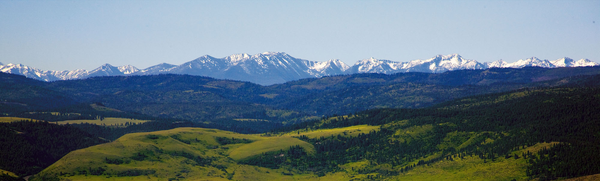 The Elkhorn Mountains with lingering snowcaps as seen from the Grande Ronde Valley. During the summer, this same recreation area provides great camping, canoeing, wildlife viewing and even berry picking!