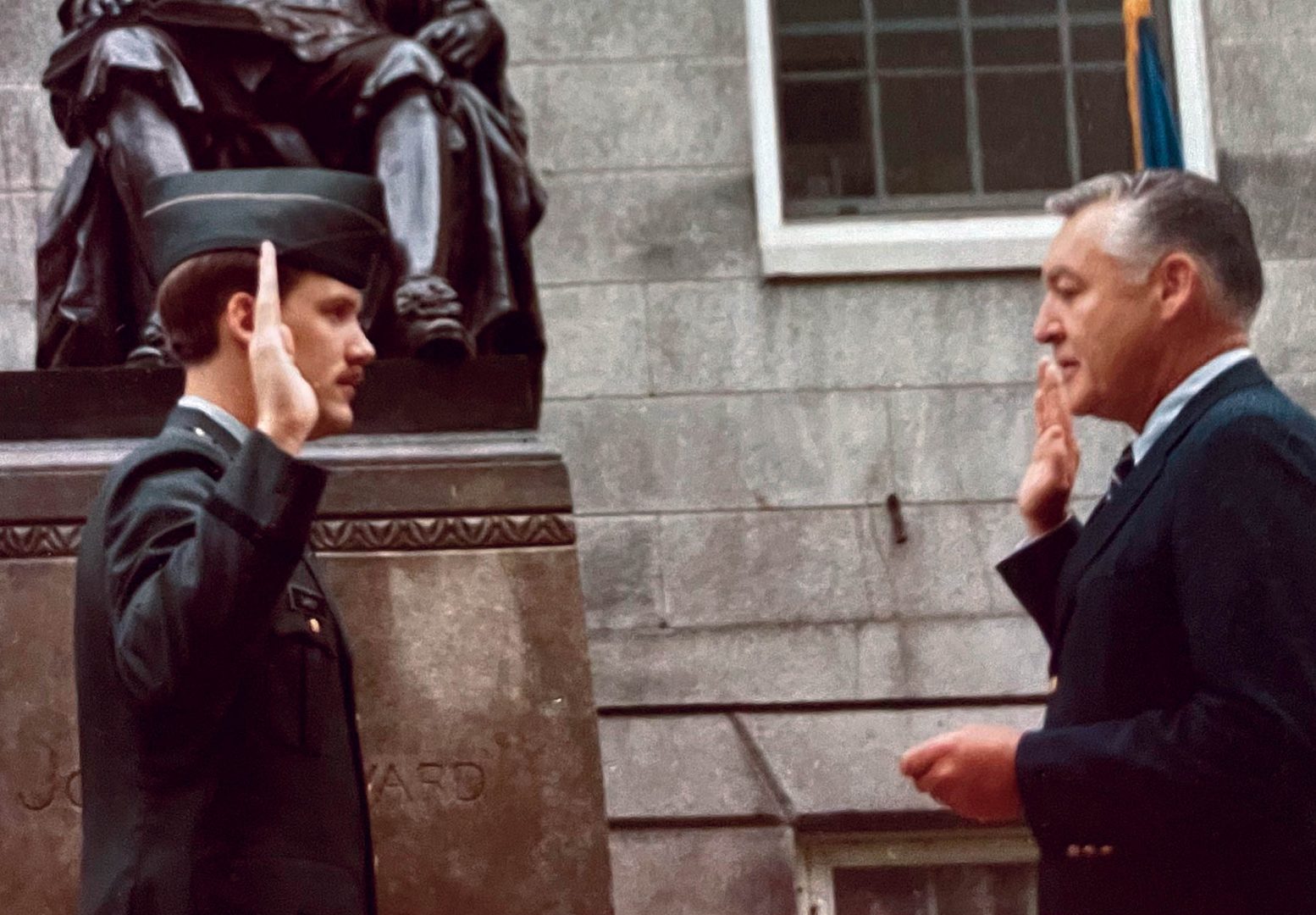 Willard Carey, ’49, (right) enlisted in the National Guard and went on to achieve the rank of Major General and command over 100,000 troops.