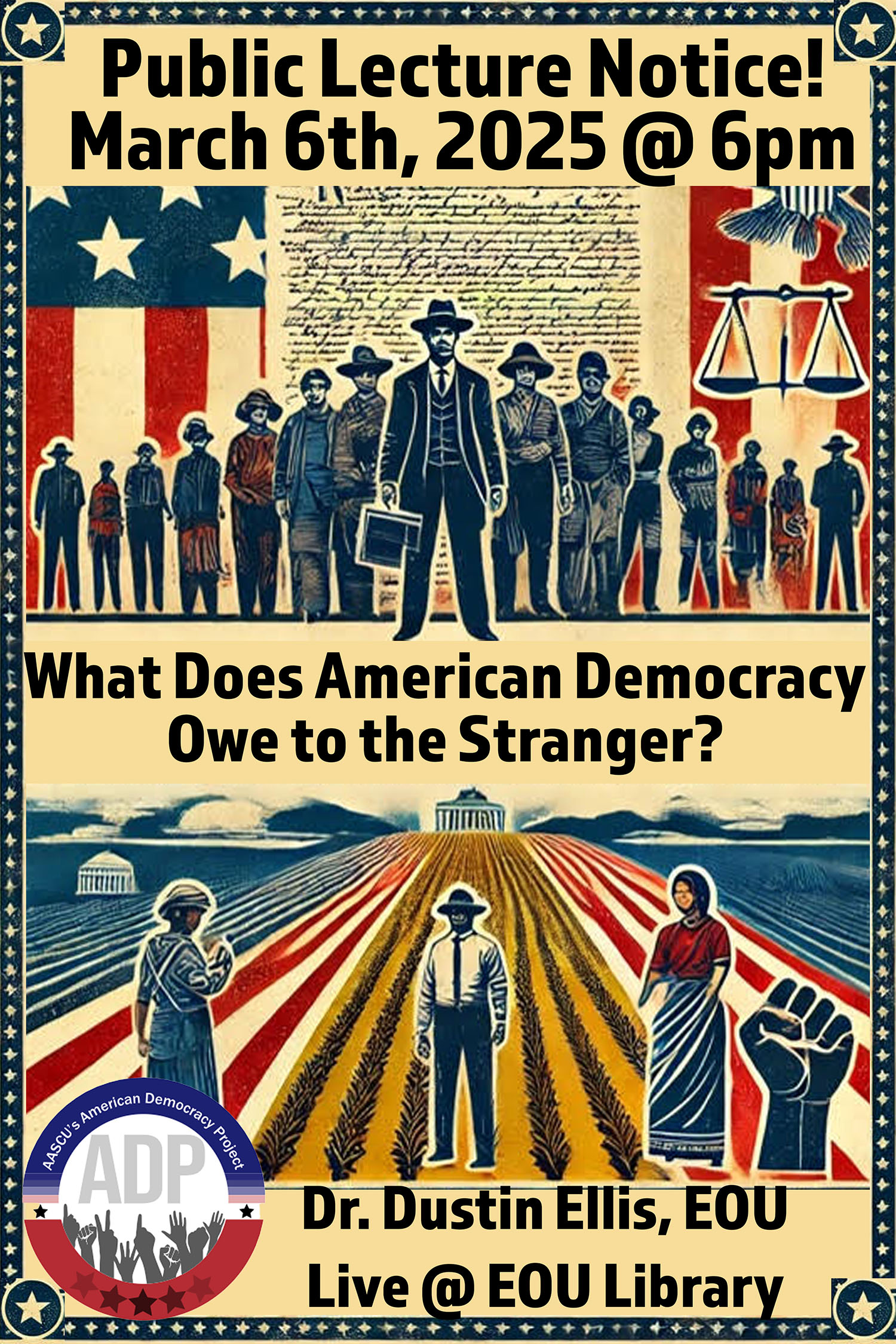 Who challenges us to live up to our ideals more than those excluded, marginalized, and dehumanized? Throughout American history, immigrants, refugees, and other marginalized “outsiders” have persistently pushed the nation to live up to its democratic ideals. Surveying a “people’s history” of American Democracy from the colonial period into our contemporary moment, this talk offers an answer to the question “What does American Democracy owe to the Stranger?” by centering voices of communities excluded from progress narratives, but that have been catalysts for expanding the meaning and practice of democracy. In examining the struggles, resilience, and triumphs of these “strangers,” we uncover a powerful truth: the health of American democracy has always depended on those who dared to challenge it.