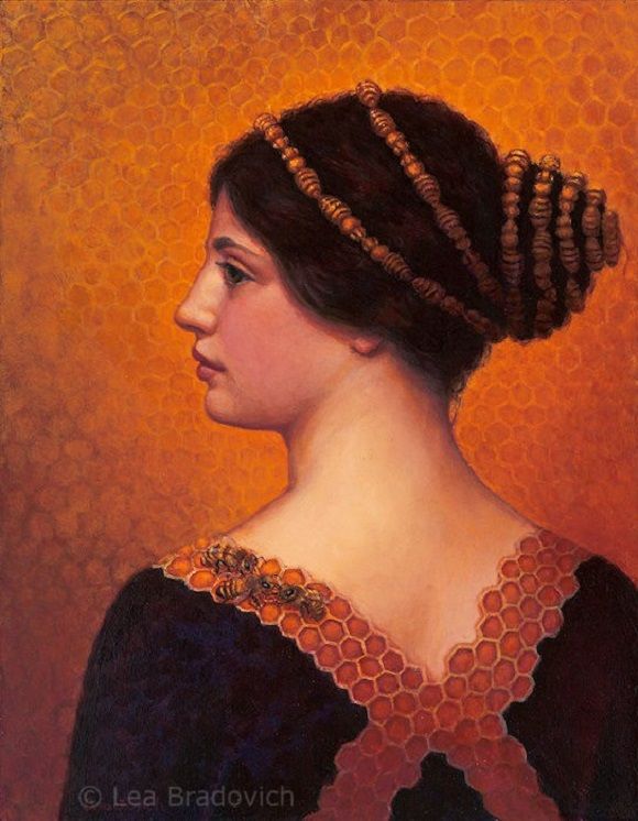 Lea Bradovich. Look Homeward Queen Bee. Oil on panel. 18 x 14 inches.