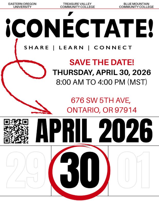 Now in its 9th year, ¡Conéctate! is hosted by one of Eastern Oregon University’s valued partners, Treasure Valley Community College, and will take place at the Four Rivers Cultural Center in Ontario, Oregon. This year’s gathering brings together faculty, staff, students, and community partners from across the region to engage with keynote speakers and interactive workshops focused on healing, storytelling, and community connection. Participants will also share practical approaches that support student persistence, leadership development, and long-term success.