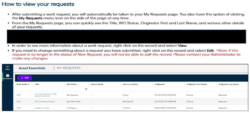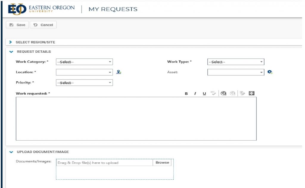 Fill in the rest of the required fields… Under “Work requested” please give as much information as possible so we can be prepared to take care of your work order request.