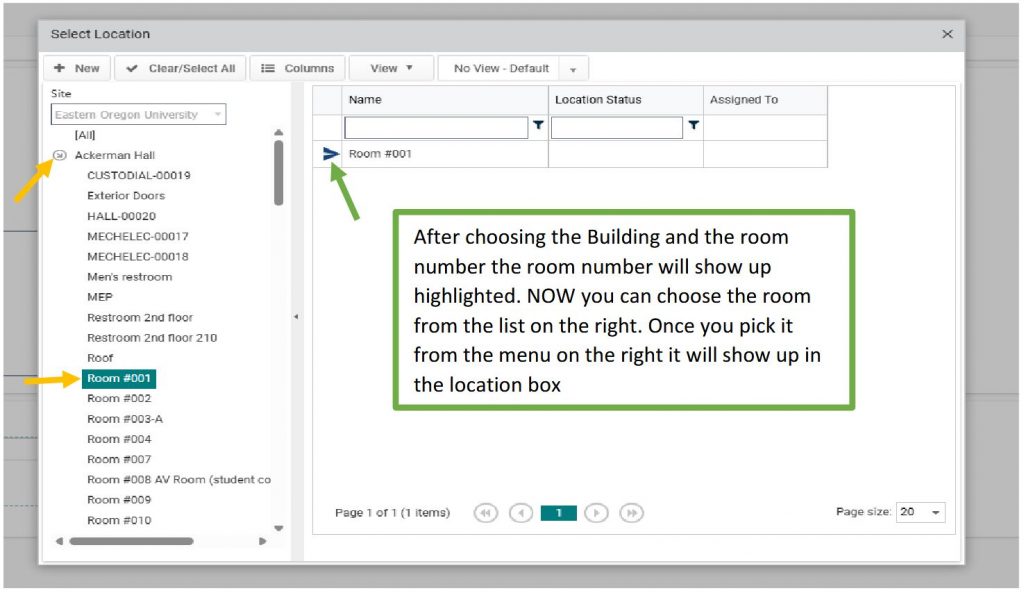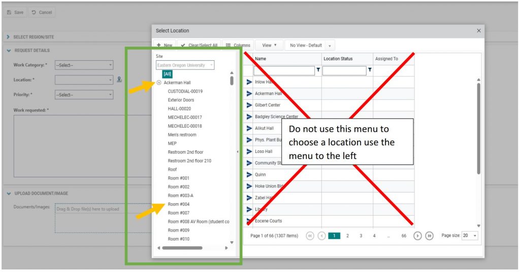 Please be as specific as possible with the location and click on the room that pertains to the work order request: