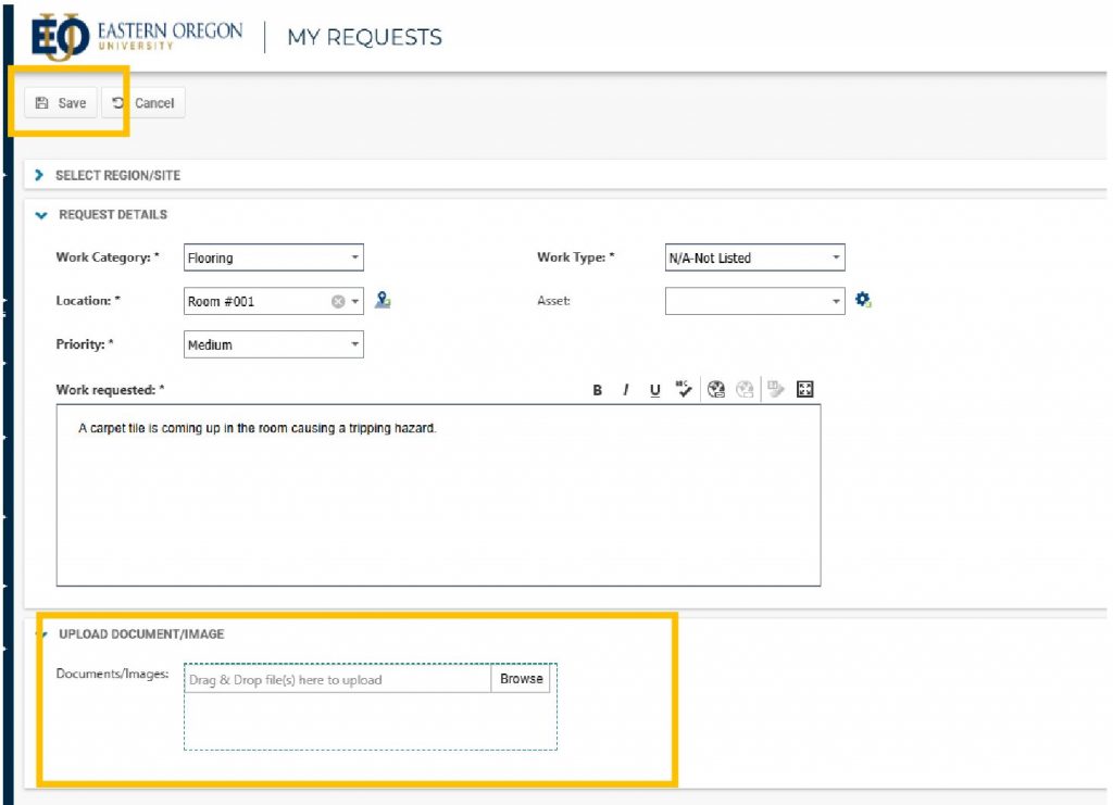 Pictures or documents can be added to make your request easier to find and/or understand.