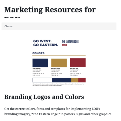 Implementing Gutenberg & replacing the Classic Editor Eastern Oregon University will be implementing the new content editor for WordPress called Gutenberg for use in managing website content. This project will be a key component in ensuring that all web pages, websites and web-based…