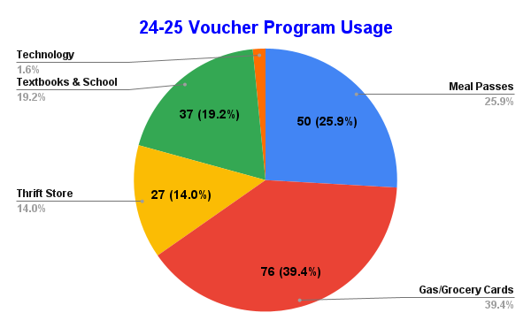 The Student Basic Needs Voucher Program through the Benefits Navigator provides financial assistance to students by offering vouchers that help cover essential needs, such as food, hygiene items, transportation, and emergency supplies. The goal of the program is to reduce barriers that impact students’ well-being and academic success by ensuring they have access to the basic resources needed to thrive.