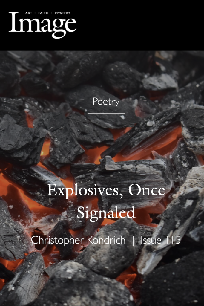 MFA faculty member Christopher Kondrich has a new poem, “Explosives, Once Signaled,” in Image.