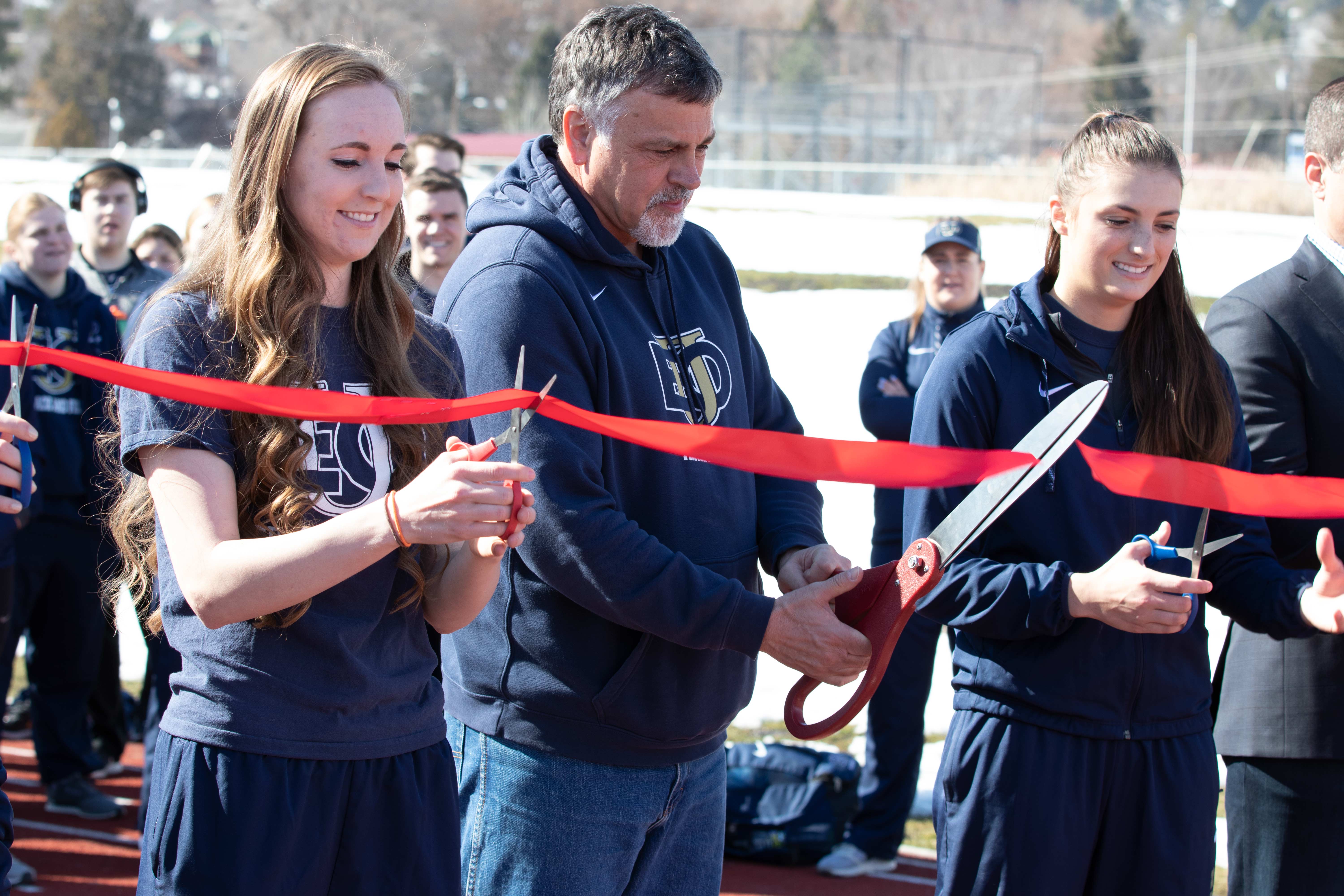 Head coach of track and cross-country Ben Welch cut the ceremonial ribbon alongside Athletic Director Anji Weissenfluh and Mountaineer student-athletes.