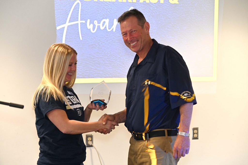 The Dixie Lund Service Award recognizes meritorious service to EOU in support of the goals, traditions, and mission of the University and Alumni Association. This year, Rob Lane was recognized for his passion and enthusiasm for EOU and the EOU Booster Club. Rob has a strong heart for his community and has always felt the University is an important part of this community for the unique quality it brings to Union County.