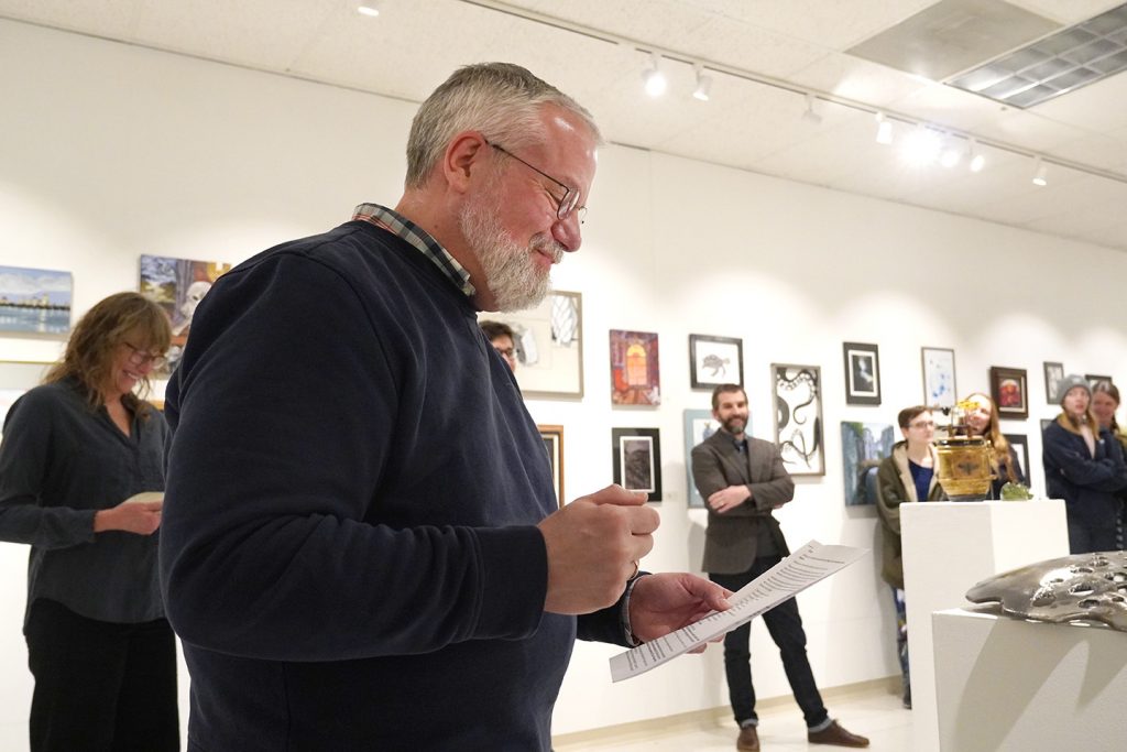 Nathan Lowe, Dean of EOU’s College of Arts, Humanities & Social Sciences gave a brief welcome to visitors, and Nightingale Gallery Director Cory Peeke presented awards. The EOU Art Department and Nightingale Gallery would like to congratulate the following award winners from this year’s exhibition and recognize the hardworking educators who make it all possible.