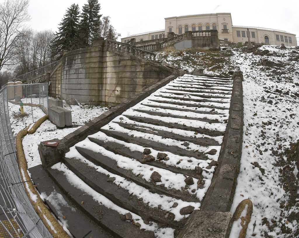 Work on removing the Grand Staircase structure is anticipated to resume early next year with a new archaeological team on-site Jan 3-19, 2024. EOU is working through the contracting process to secure Eastern Washington University Archaeological and Historical Services (EWU AHS) to provide these services. EWU AHS will monitor excavation and ensure that artifacts that may be uncovered are managed in accordance with the requirements of a secured archaeological permit.