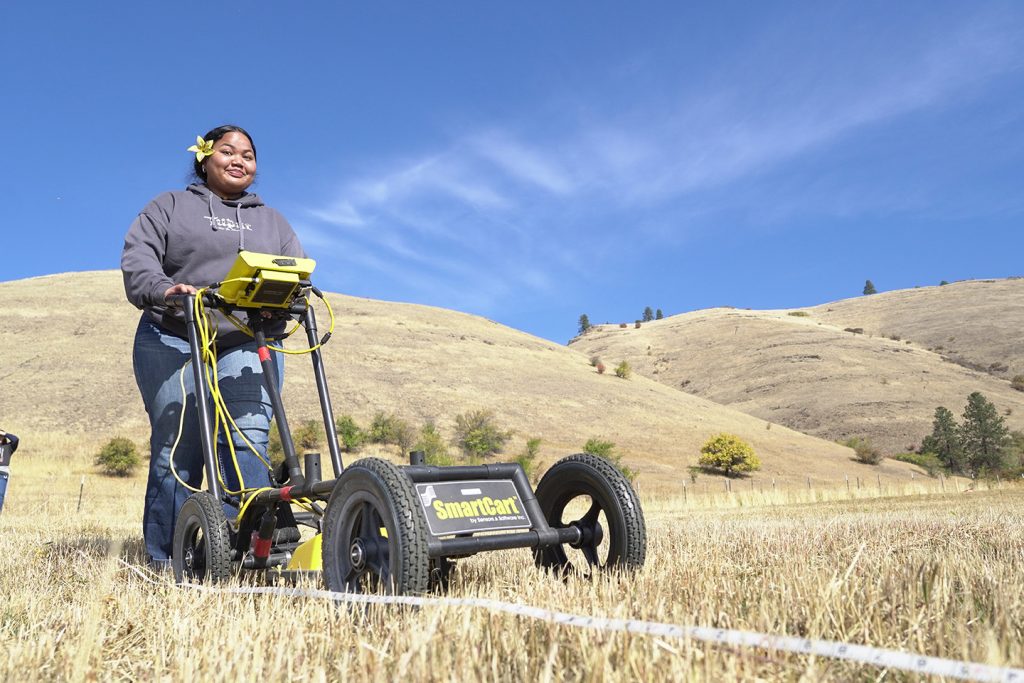Eleven Eastern Oregon University students set out across Lower Cove Cemetery, under a perfectly blue autumn sky, a small cart in tow. Inside is ground-penetrating radar (GPR), a noninvasive tool that sends pulses into the soil and records reflections from what lies below. The goal is both practical and profound: help caretakers of the pioneer cemetery, still in use today, locate unmarked or deteriorated graves so future burials can proceed respectfully and accurately.