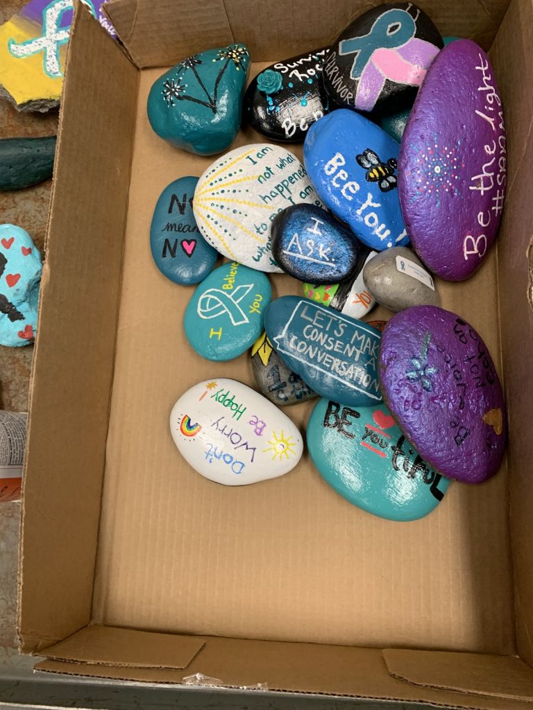 “As they find a rock around campus they’ll take a picture of it or with it, post it to their social media platforms, hashtag Sexual Assault Awareness Month, hashtag Shelter From the Storm, hashtag believe survivors or hashtag cancel rape culture,” she said.