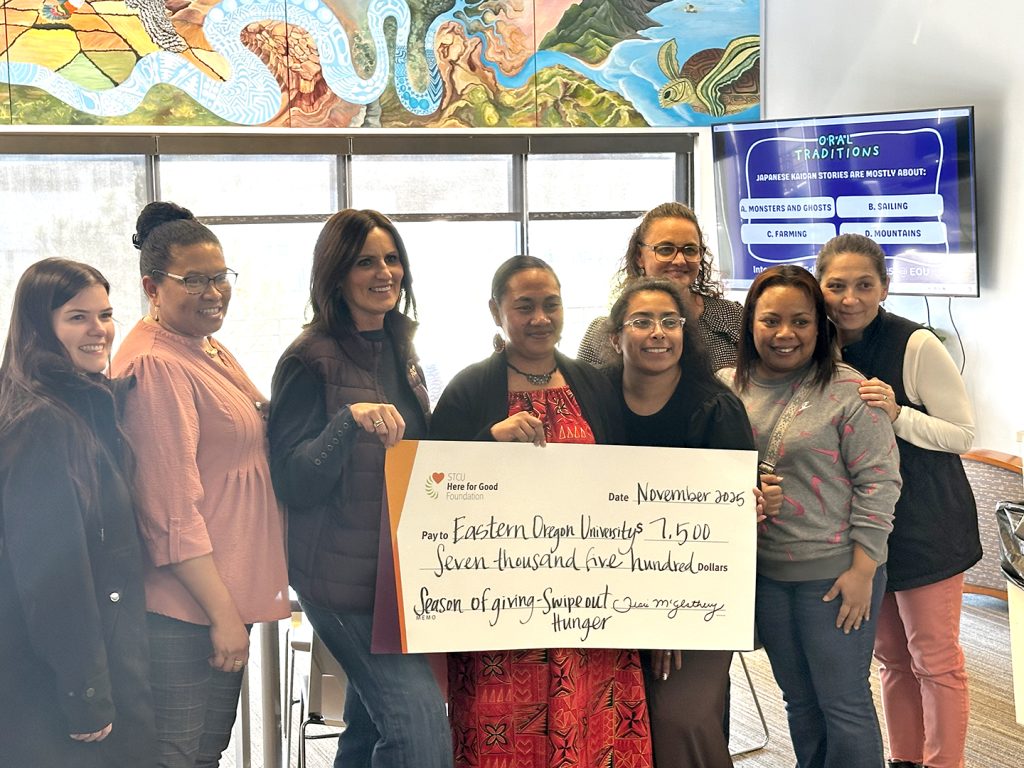 LA GRANDE, Ore. — Eastern Oregon University received a generous $7,500 donation from Spokane Teachers Credit Union (STCU) to support the university’s on-campus food pantries and student basic needs programs. The gift arrives at a critical moment for EOU’s Benefits Navigator Program, which oversees pantry operations and provides essential resources for students facing food insecurity.
